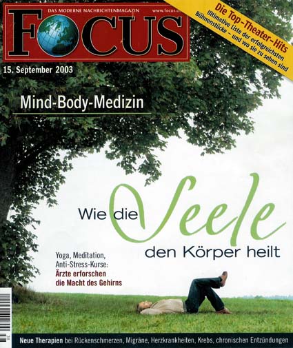 Doch auch der Fokus bringt ganzheitliche Ansätze, denn diese sind ja wirklich im Trend. So gibt es beispielsweise einen aktuellen Titel mit dem Thema: Wie die Seele den Körper heilt: ....Auschnitt: "...Dass ein kurzer achtwöchiger Meditationskurs Funktionen in bestimmten Hirnarealen anregt und gleichzeitig das Immunsystem zu höherer Leistung anspornt, bewies der US-Hirnforscher Richard Davidson erstmals Anfang dieses Jahres.