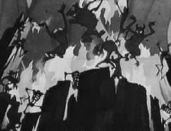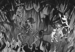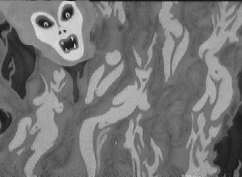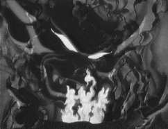 Ich sehe einen Tunnel, also wie eine Rutsche rausch... rausch, runter, hoch Spirale... rutsch, rutsch. Da Unten ist ein Licht. Ja und das Ende der Rutsche ist ein Kopf, wieder so ein Dämonenkopf, aus dem seinen Mund bin ich raus gekommen. Sowas, wie ne riesige Felswand und dann bin ich in so Nebel gefallen... also so große Nebelschwaden und da bin ich reingeflogen. Wupp. Ich sehe nur diesen Nebel... ich falle immer noch. Aja ok, ok, es geht noch tiefer... und jetzt sind unten Flammen... also da wo ich reinfalle, sind Flammen. Flammen und irgendwie diese Dämonenfratzen ... Schlangen ... so ein Fegefeuer oder so. Ich verbrenne, ich verbrenne!!!